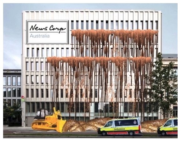Dozens of ambulances and paramedic crews as well as bulldozers have been mobilised across the Sydney metropolitan area to respond to a widespread outbreak of explosive diarrhoea at the Holt Street headquarters of News Crap Australia. (below)