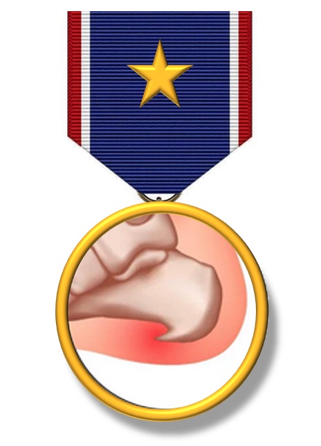 “So we’ve struck a special medal just for him for his bravery in the face of enemy fire, as well as a new medal, the Order of the Bone Spurs, (below) recognising the President’s personal record of military service.”
