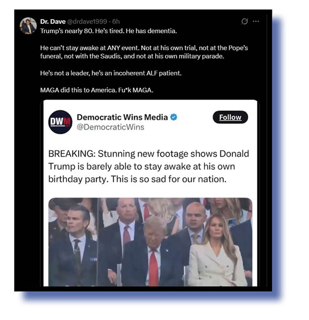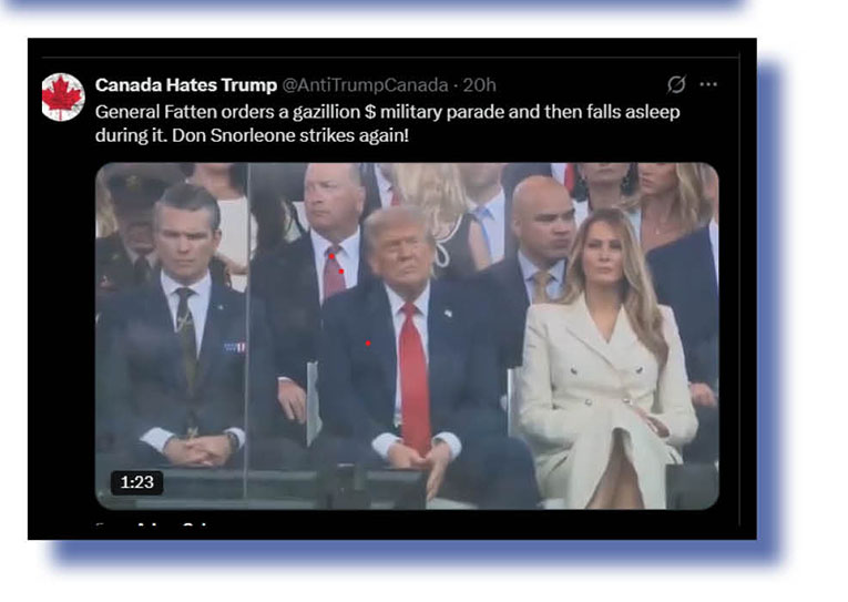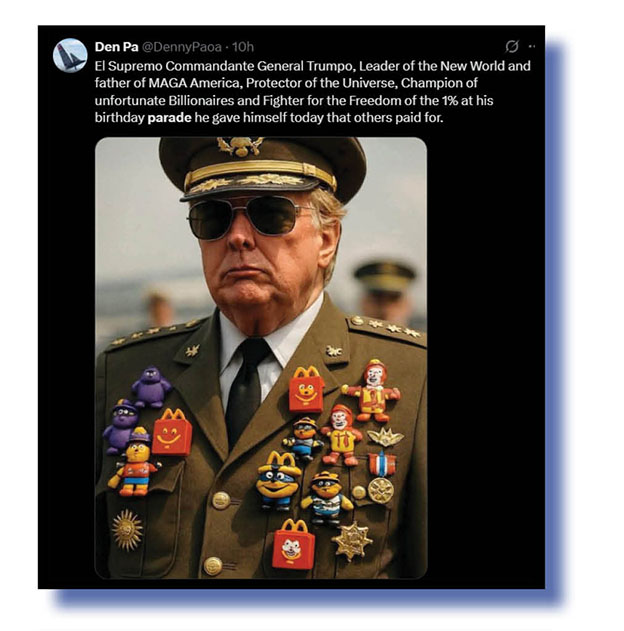 Excretas went ballistic with brilliant images through history of REAL miliary parades put together to honour REAL tyrants and REAL dictators and not pretend ones like Demented Donald. Far too many to do justice to; likewise for the images of the enormous No Kings! rallies in every state of the Union.