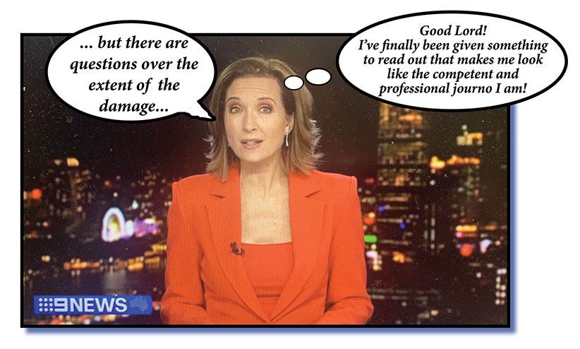 But enough about professional mainstream media outlets … let’s have a look at Nine News Queensland’s 6pm bulletin on Monday, where claims by Donald Trump and others that bunker-busting raids of Iranian nuclear facilities had “obliterated” them.