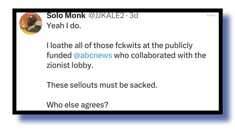 Oh, and by the way, if you think that from this disaster, your ABC might have learned to grow that pair we mentioned right at the top and now knows the importance of telling Zionists to well and truly fuck off – using much more diplomatic language, of course – a reread of a recent Bug post will probably change your mind.