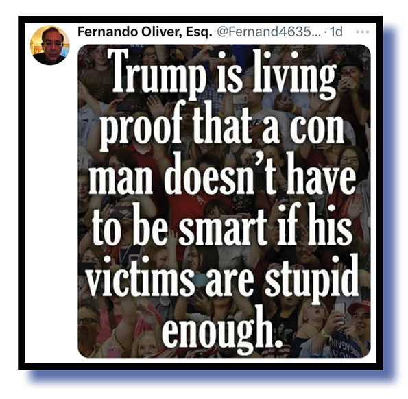 The judges of this column despair some times over the grim reality that each of these excretal examinations week after week, month after month, could focus completely on the antics of Yam Tits, Captain Bone Spurs, the Tangarine Shitgibbon, The Moron of Mar-a-Largo, Diaper Donald, Demented Donnie, etc, etc.