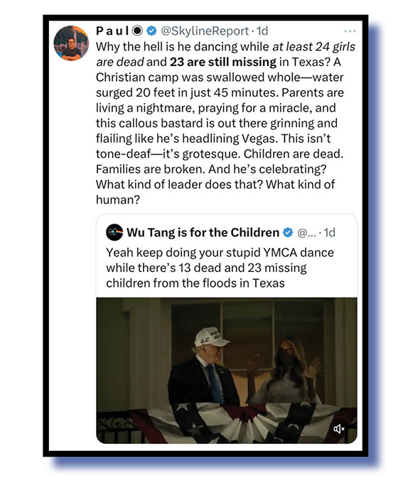 And to be fair, Trump does plan to visit the scene of the Texas school summer camp tragedy as soon as he can work out how to monetise it. Limited edition Trump gold-coloured life jackets in both 45 and 47 models?