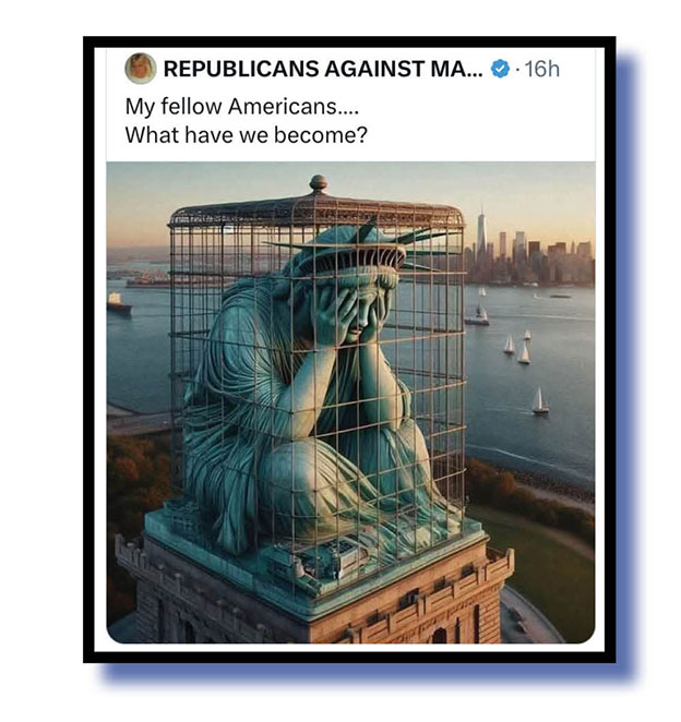 And as you can see from the wonderful meme (at top and below) from REPUBLICANS, etc, etc Trump’s triumphant announcement of his concentration camp for brown cat and dog eaters got the xcrement flowing into our putrid prizebarrel.