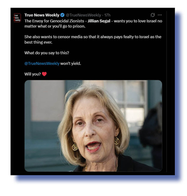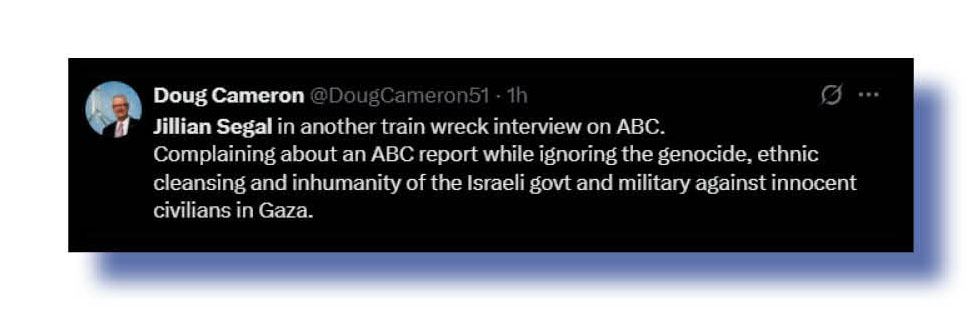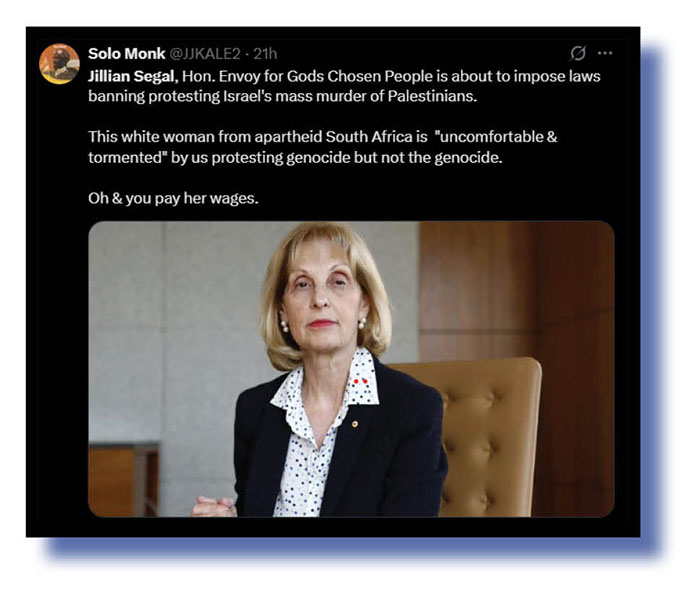 Okay, if we had pulled one out to highlight, it would have been JayJay’s short and pithy offering! Half-way through, now, and anyone else out there wondering why Arabs calling for the destruction of Israel so shocks Segal to the very edges of her cotton socks yet somehow miraculously can’t see that Israel is hellbent on doing the same to Palestinians fairly quickly in Gaza and a bit slower in the West Bank? Nor what most of Netanyahu’s ministers think of Palestinians and what should happen to them all? Every man, every woman and child?
