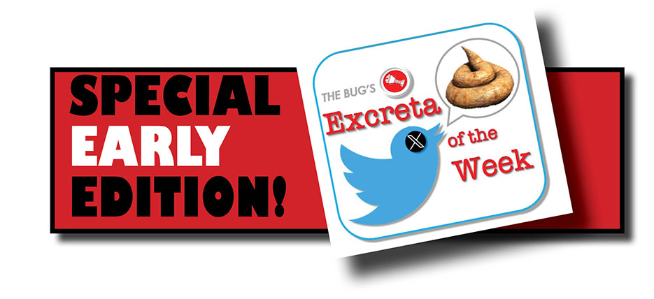 Never before has The Bug published an early edition of our popular if somewhat putrid Xcrements-of-the-Week column …. but we simply could not wait until Monday!