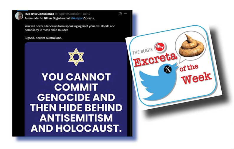 That putrid flood of not-literal faecal matter has continued to flow into our prize barrel over the story du weekment, namely hostile and widespread reaction to the release of special envoy Jillian Segal’s zionistic report on how to combat antisemitism in Australia.