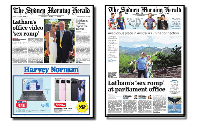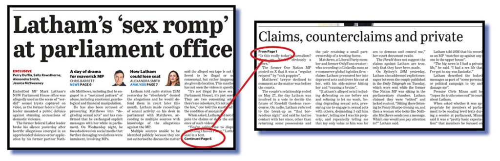 And today’s SMH is a classic example. As is often the case with each Thursday’s edition, it has a four-page Harvey Norman wraparound. The production powers-that-be yesterday decided to call the page you see to the left above page one! That’s right. Like newspapers since the press was invented, calling page 1 page 1 makes absolute sense. We could also call it the front page or the cover page and who would quibble with that!