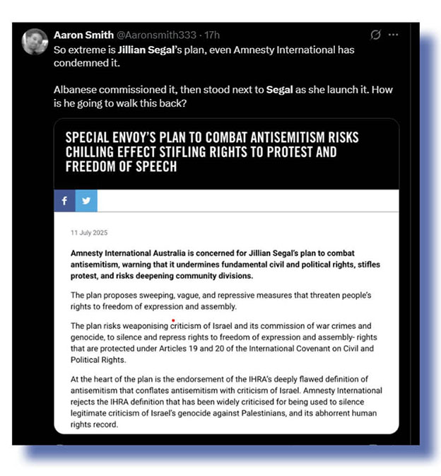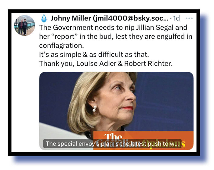The reason for this tardiness? Earlier iterations of this column explained the record amount of xcrement that flowed into our prize barrel all last week over just one topic, the release of special envoy Jillian Segal’s zionistic report on how to combat antisemitism in Australia.