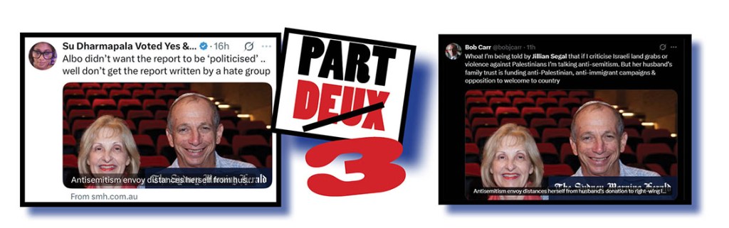 The reason for this tardiness? Earlier iterations of this column explained the record amount of xcrement that flowed into our prize barrel all last week over just one topic, the release of special envoy Jillian Segal’s zionistic report on how to combat antisemitism in Australia.