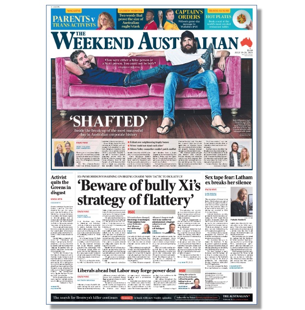 Scott Morrison: Yes, I draw your attention to the front page of The Weekend Australian. (below) Which quotes a well-known China expert expressing the same views as me.