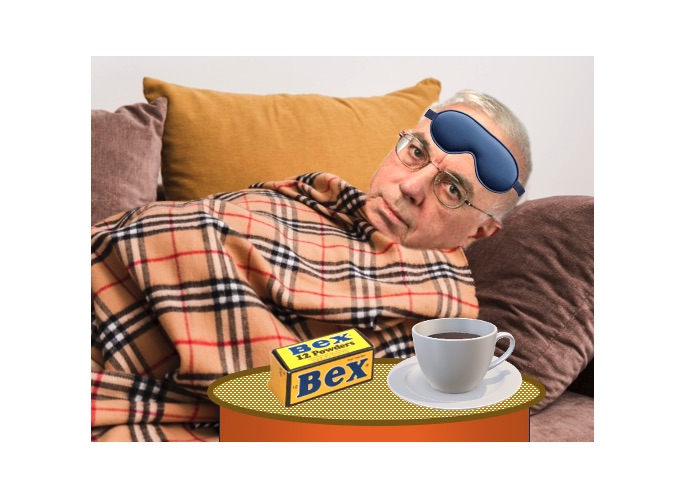 “At about 4pm after I’ve finished replaying and analysing the woke, transgender, radical green, fictitious climate change messaging hidden in the afternoon edition of Play School, and before the start of the blatantly antisemitic Peppa Pig, I now force myself to have a cup of tea, a Bex, and a good lie down. (main picture)