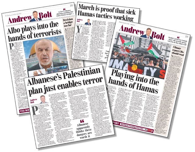 “Andrew in particular has been very puzzled by events such as last weekend’s huge antisemitic protest march across the Sydney Harbour Bridge which showed a lot of antisemitic Australians – and I mean a lot – aren’t on the same page as Andrew when it comes to the behaviour of the brave and glorious Israeli Government in its selfless efforts to cleanse the Palestinian-infested Gaza, the West Bank, and other regions.