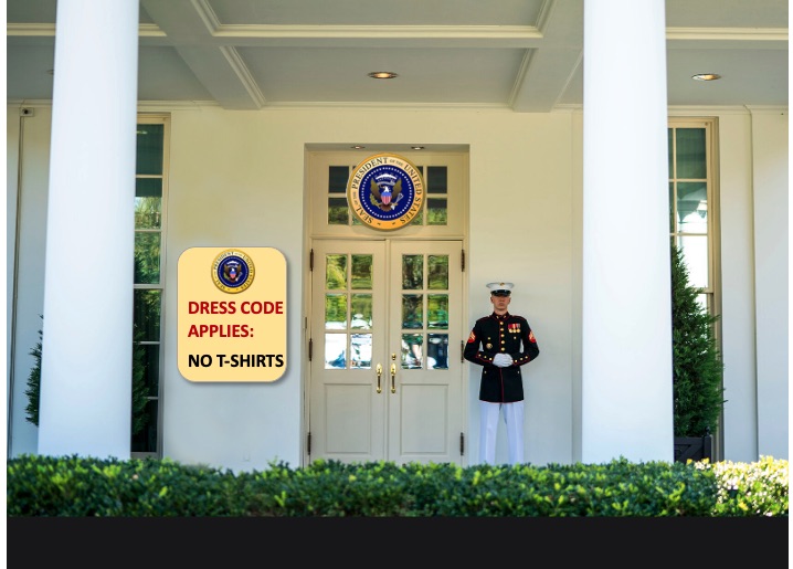 “When he gets here he’ll notice we have made a couple of minor adjustments to the West Wing and Oval Office entry conditions. (below)