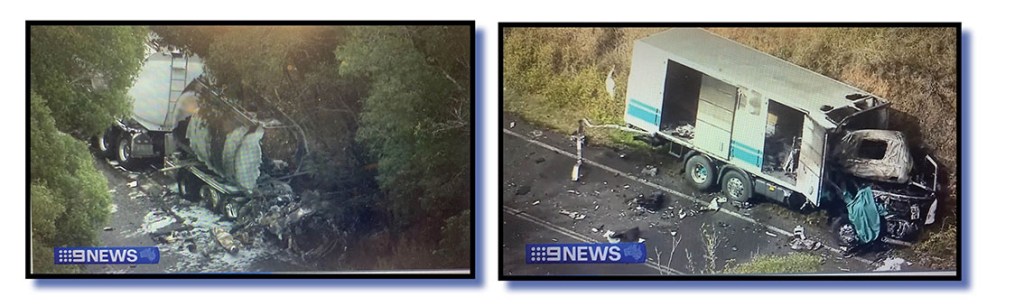 And why? Because while none of our media column compilers have ever been the victim of a fatal road accident, they immediately assessed the damage to both cabins in what clearly would have been a high-speed impact. And that both vehicles were burnt out. Indeed, they also factored in Gripske’s voiceover that both vehicles burst into flames on impact, both cabins were incinerated and the fire brigade took two hours to put out the flames. And they took a calculated guess and decided that first responders would not have gotten to a fairly remote spot any time soon.