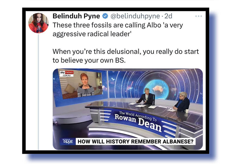 And speaking of media (if you can call Sky LNPNews media) here are Belinduh Pyne and stranger pooping away at Rowan Dean and fiends.