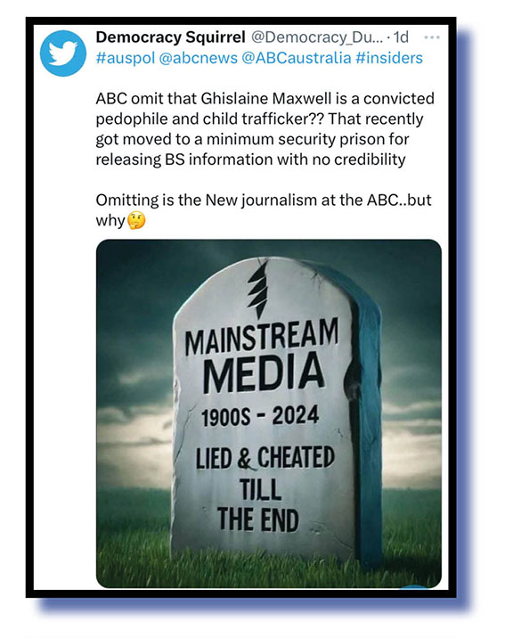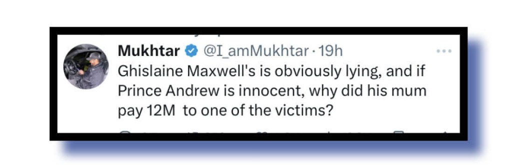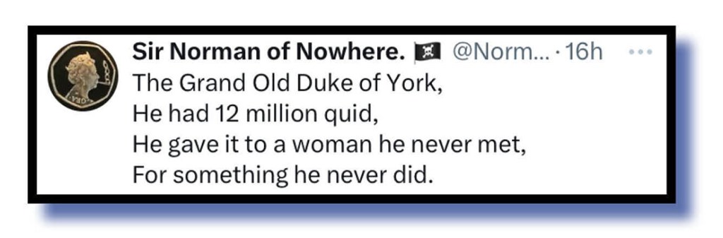 Strong suspicions that Donald Trump may soon pardon paedophile Ghislaine Maxwell sparked these xcrements from Mukhar and Sir Norman of Nowhere that targeted Prince Andrew, and Democracy Squirrel with the ABC in his rear sights.