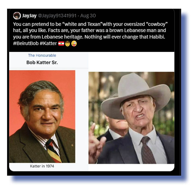 And one of our editors summed that up brilliantly if rather coarsely: “Katter has held what is basically a National Party seat full of racists for yonks. Why wouldn’t he proudly and frequently claim his Lebanese heritage just to make sure the electors of Kennedy didn’t suspect he might be part-darkie?”