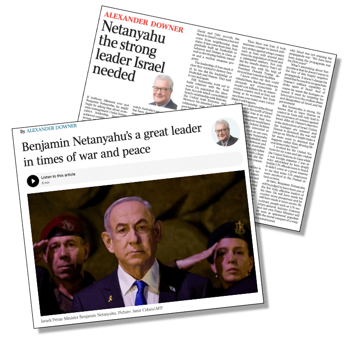 The butler obliged, saying: “But one who stood out in The Australian in recent times was former foreign minister Lord Downer of Adelaide Hills and his efforts both online and in the hardcopy newspaper (below) to ignore the deaths of 60,000 Palestinians under the Netanyahu Government and instead dismissed criticism of the Israeli tactics as anti-Jewish propaganda.