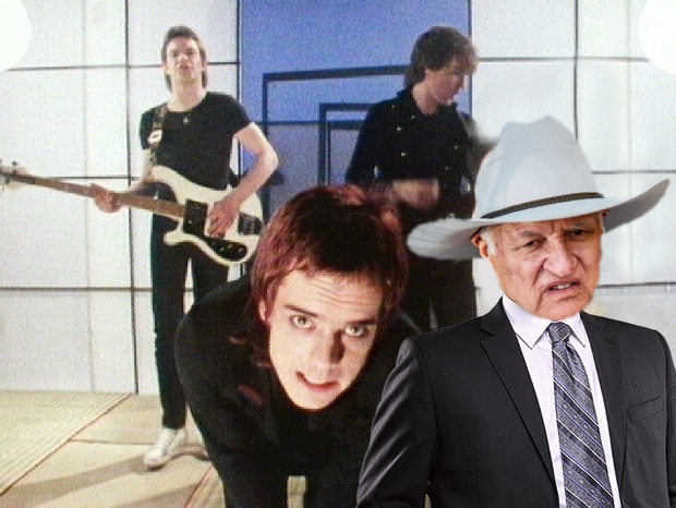 The band’s lead singer, David Fenton, who wrote Turning Japanese (second from left below) said he was inspired to pen the new song after seeing vision online of Queensland federal MP Bob Katter Junior’s recent fiery encounter with a Brisbane TV reporter.