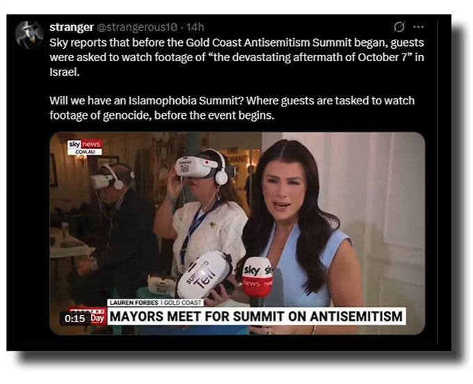 Meanwhile as coppers on Bondi Beach pondered if they should be arresting the Palestinian supporters for anti-semitism, stranger brought our attention to a weekend convention further north at another famous Aussie spot and marvelled at how Sky News revved up attendees, as you would at such events.