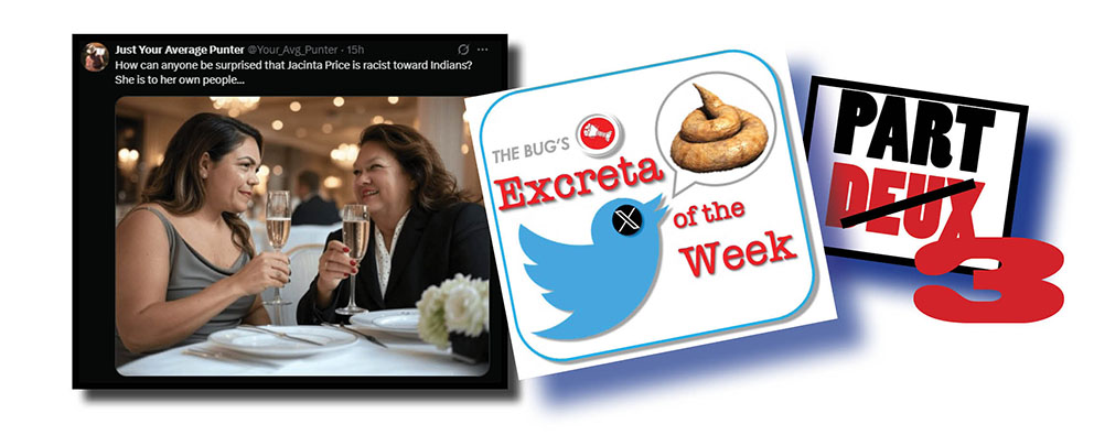 When our Xcrements-of-the-Week uploader fell violently yesterday having to process a stinking pile of poo on Donald Trump, we decided to discard other X postings on domestic matters.
