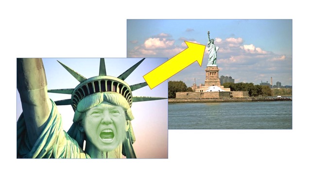 “My plan is a fitting tribute to … umm, you know, for his work, and his beliefs,” he said. “Quite frankly it’s something I’ve been wanting to do for a long, long time because as it stands right now, the Statue of Liberty sends all the wrong signals to America and the world.
