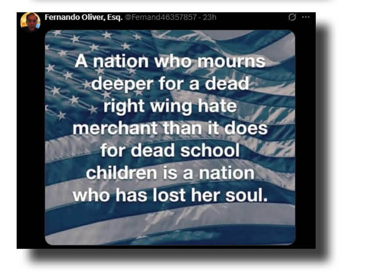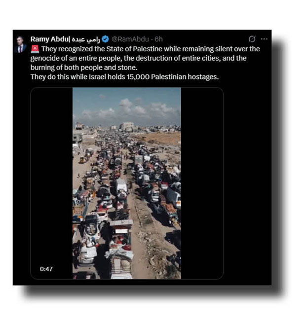 Events in different parts of the country are intrinsically linked as Uncle Sam slips below the surface of a cesspit of corruption, cronyism and callous disregard for the basic rules of how a decent and fair country should behave; Trump and V.D. Dunce at Charlie Kirk’s memorial service whipping up even more division in a tragically divided nation; their Republican colleagues over in Washington and the Big Apple slamming those anthony-come-lately nations that have finally joined 150 others in recognising a Palestinian state even though it’s now too late for that.
