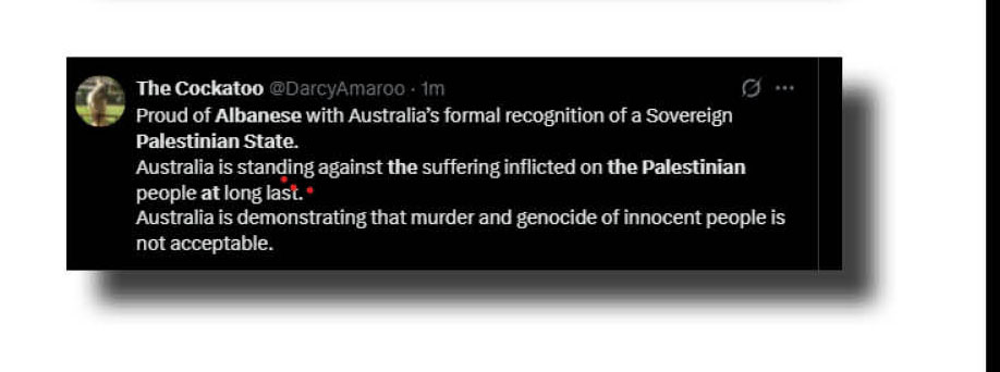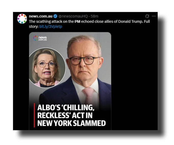 Now for the bricks and bouquets tossed Albanese’s way as Australia, France, the UK and Canada finally joined the call for a two-state solution that will never happen.
