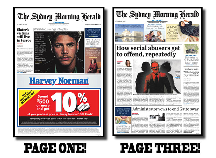 We refer to this morning’s (Saturday’s) edition of The Sydney Morning Herald, where overnight, its subs have absolutely nailed the source of stories that have continued from the edition’s page 3.