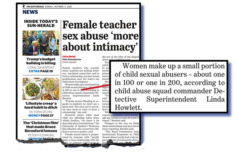 So, who’s to blame for not clearing that up? Our child-abuse expert for being a little wishy-washy? Our crime reporter Sally Rawsthorne for not clarifying what the expert really said? Or a sub-editor fucking around somehow which is always a possibility?