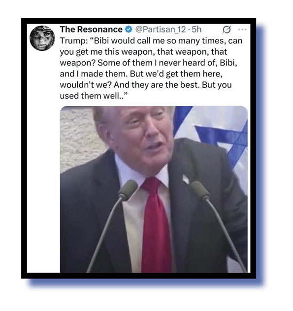 Following Donald Trump’s boast that Israel has “put to good use” the bombs he gave Bibi Netanyahu and his Zionist buddies to conduct genocide in Gaza these past two years, we reluctantly – well, not really! – continue this column with more xcreta plopped on the Mango Moron and his repulsive family.