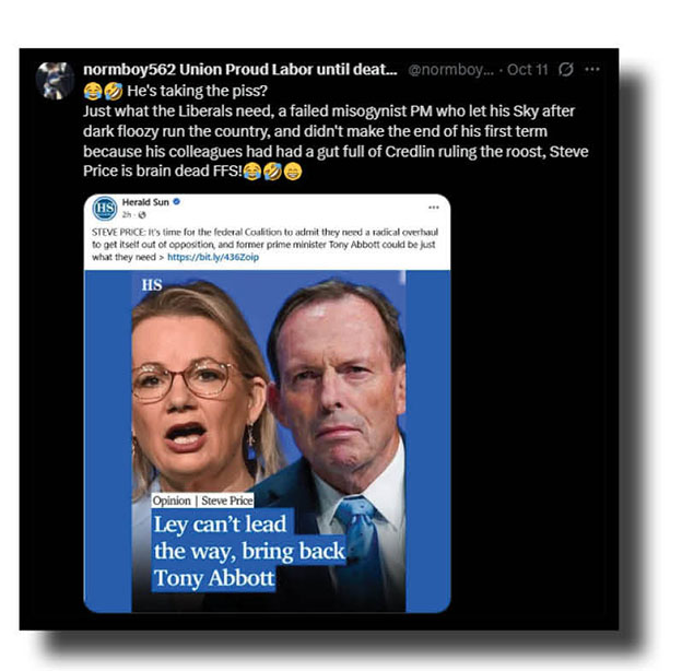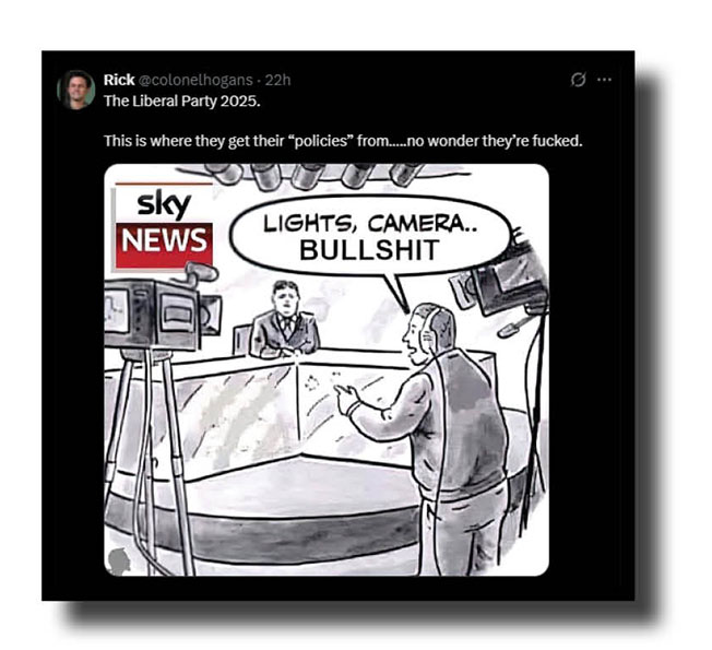 After that, we needed something much lighter and capable of returning a smile to our shattered faces, so for our final look at the xcrement that poured into our prize barrel last week, let’s have a laugh and concentrate on domestic Australian politics; well, more specifically, the attempts by the Liberal Party to rise like Lazarus from the ashes and once again be a competitive force at elections.