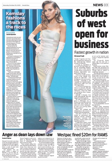 By that old rule today’s edition of Melbourne’s Herald-Sun suggests that a fashion parade on Royal Oaks Day coming up at Flemington racecourse is genuinely big news. (below)