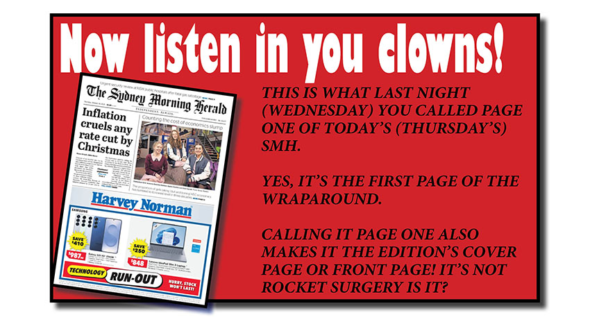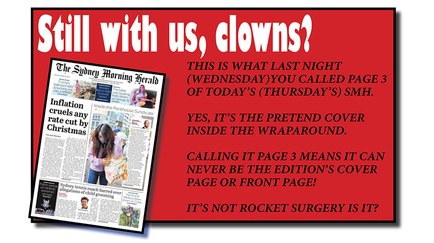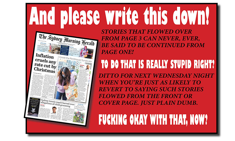 Another night shift has passed at the The Sydney Morning Herald where our sub-editors didn’t have a fucking clue as to how to apply the basics of that wonderful craft.