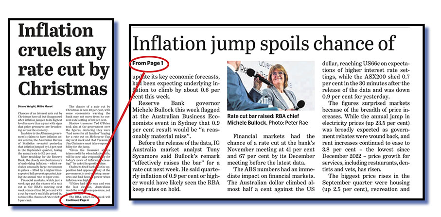 This sub – God blessed their cotton socks – actually knew how today’s (Thursday’s) edition was folioed. We just hope this sub hasn’t been sacked for competence. To see that story’s spill being handled correctly gave the tired, washed-up, old hacks who compile this column brief hope that their long-running campaign, basically to help those subs count pages when the book they are working on includes an advertising wraparound, had finally made headway!
