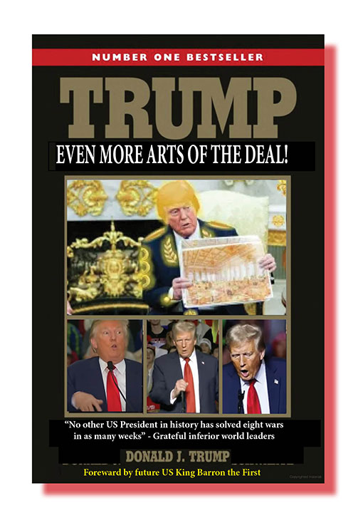 But his recent success on the international stage, particularly his key role in solving eight wars in as many months, and with the US economy going gangbusters as zillions of dollars in tariffs pour into the US treasury coffers and Americans have never been better off with living costs plummeting, as reflected by his record popularity rating in all the major polls, he was convinced by his financial advisers to rush out Even More Arts of The Deal.