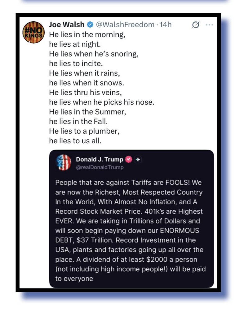 On God’s gift to world politics, Phoenix Wise, etc, etc, and Joe Walsh had this to spray.