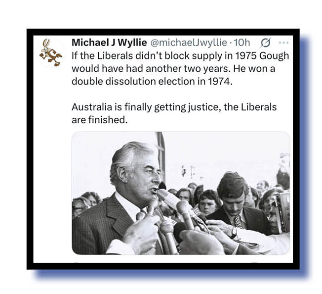 With our XOTW deadline being last Sunday night, there wasn’t a lot of xcrement squeezed out early on yesterday’s 50th anniversary of Gough Whitlam’s dismissal but we managed to snare these smelly offerings from Jenny Frecklington-Jones and Michael J Wyllie.