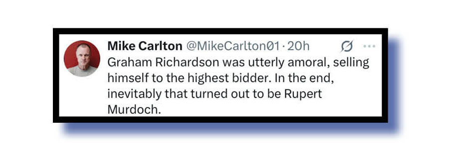 And to show that for our XOTW compilers, their love of a good start to a joke is always extended to Xers happy to speak ill of the dead, so take it away, Mike Carlton.