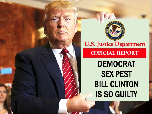 “This report shows Bill Clinton – and therefore every member of the Democratic Party – is so, so guilt, so very guilty,” Mr Trump said. (main picture)