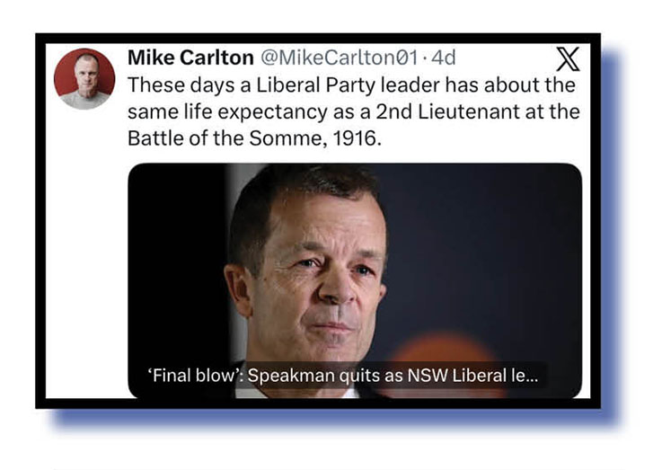 Other Xers let it rip against former and current Liberal heavyweights, including these brown nuggets from Mark Ogge and Rick, while Mike Carlton took a wider view of where he suspects the Liberals at both state and federal levels are headed.