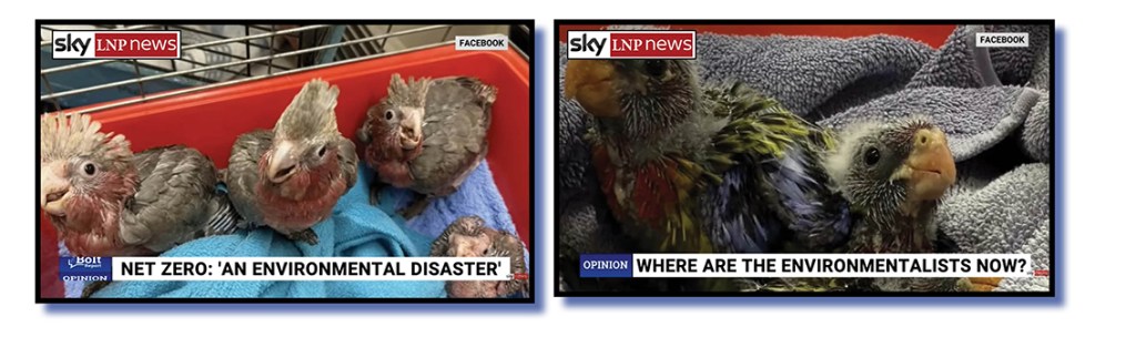 Hundreds were killed by the trees’ destruction. Many, many, more that we don’t know about. And Bolt could be forgiven if he had broken down and cried when he told his viewer that one of the injured birds taken to a Mudgee vet had already died!