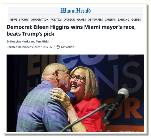 Mr Trump then diverted to US domestic politics by referencing the Democratic Party’s upset win in Miami, Florida where on Tuesday its candidate broke the traditionally Republican Party grip on the city’s mayoralty. (below)