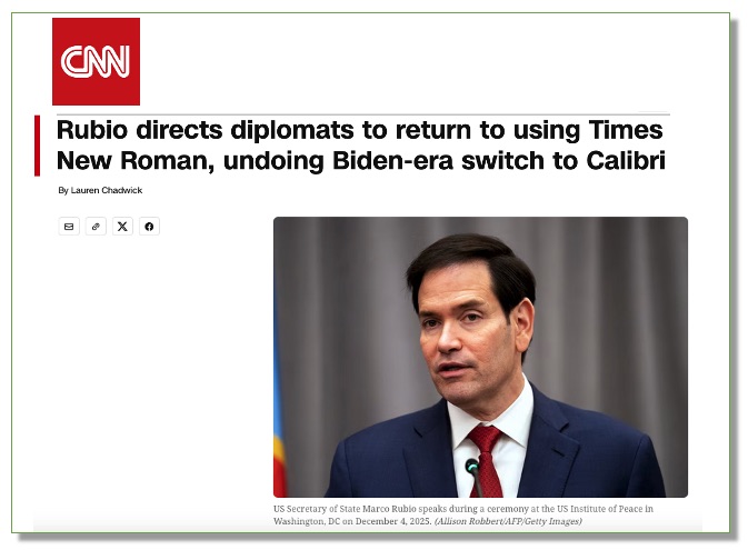 WASHINGTON, DC: US President Donald Trump has stepped up his criticism of European nations while backing a directive to the State Department by his Secretary of State, Marco Rubio, to abandon the Calibri font. (below)