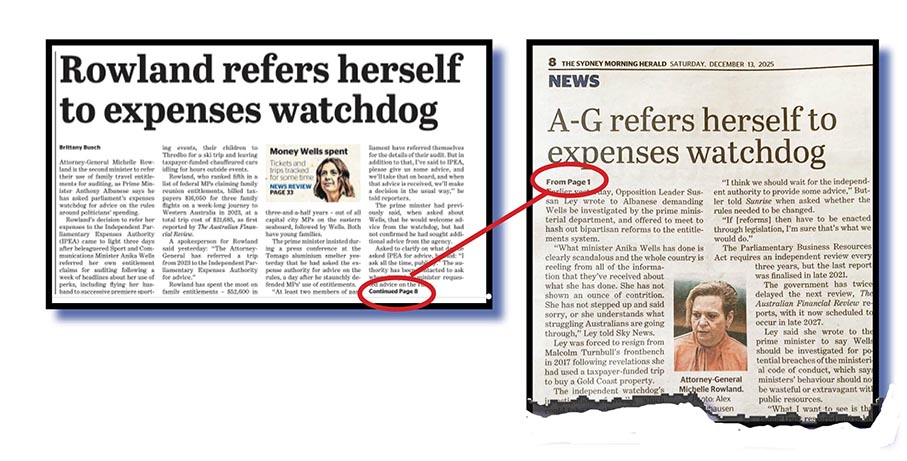 BATWUOH 1: The Wednesday night subs at The Sydney Morning Herald have got it right AGAIN! That must be the fourth week in a row that they’ve correctly identified that a story that spills over from page 3 actually came from page 3!