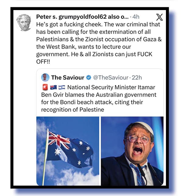 This week’s edition of The Bug‘s popular Xcrements-of-the-Week column was delayed a day – and the deadline extended for entries to plop into our prizebarrel that pongs even more than Trump’s diaper – so we could concentrate on what Xers had to say in light of the Bondi Beach massacre.