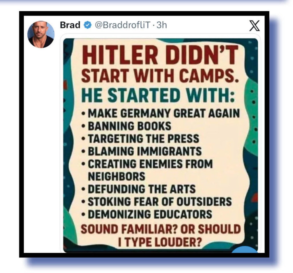 Yes, the fascist who has declared anyone against him as true enemies of the state, who is giving one clear example after another of his desire to be a dictator with an illegal third term by sooling defence forces and face-covered ICE thugs on to various states’ population.