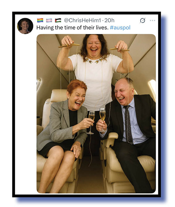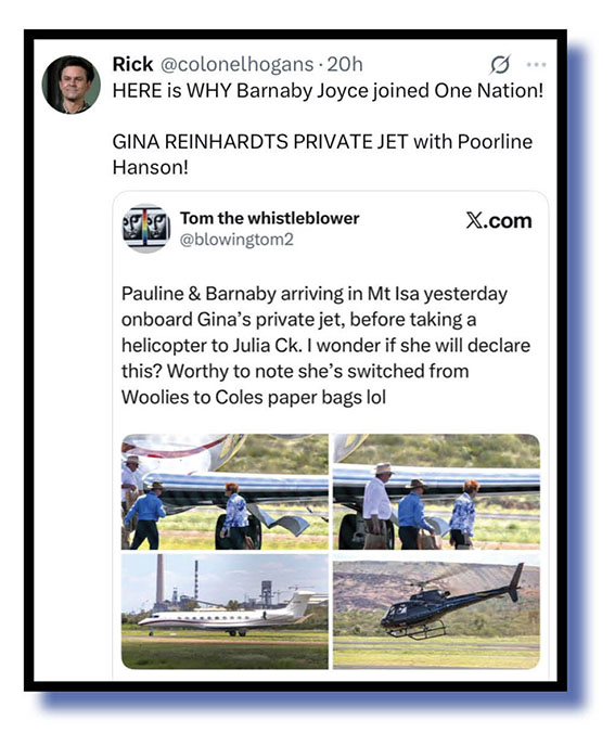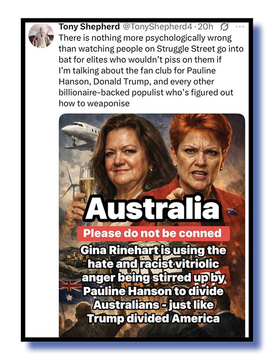 Divide and conquer… We’ll finish off some faecal flak headed Pauline Hanson’s and Barnaby Joyce’s way from Tony Shepherd, Rick promoting the work of Tom the whistleblower and the Xer we call flags.