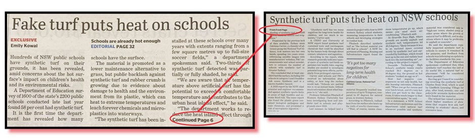 We can’t recall the last time the Sunday edition did that. Bur they did and some of our compilers muttered “please don’t” as they turned the edition to the page 6 overflow from the Fake Turf story on that PAGE THREE! But they did! FROM FRONT PAGE!